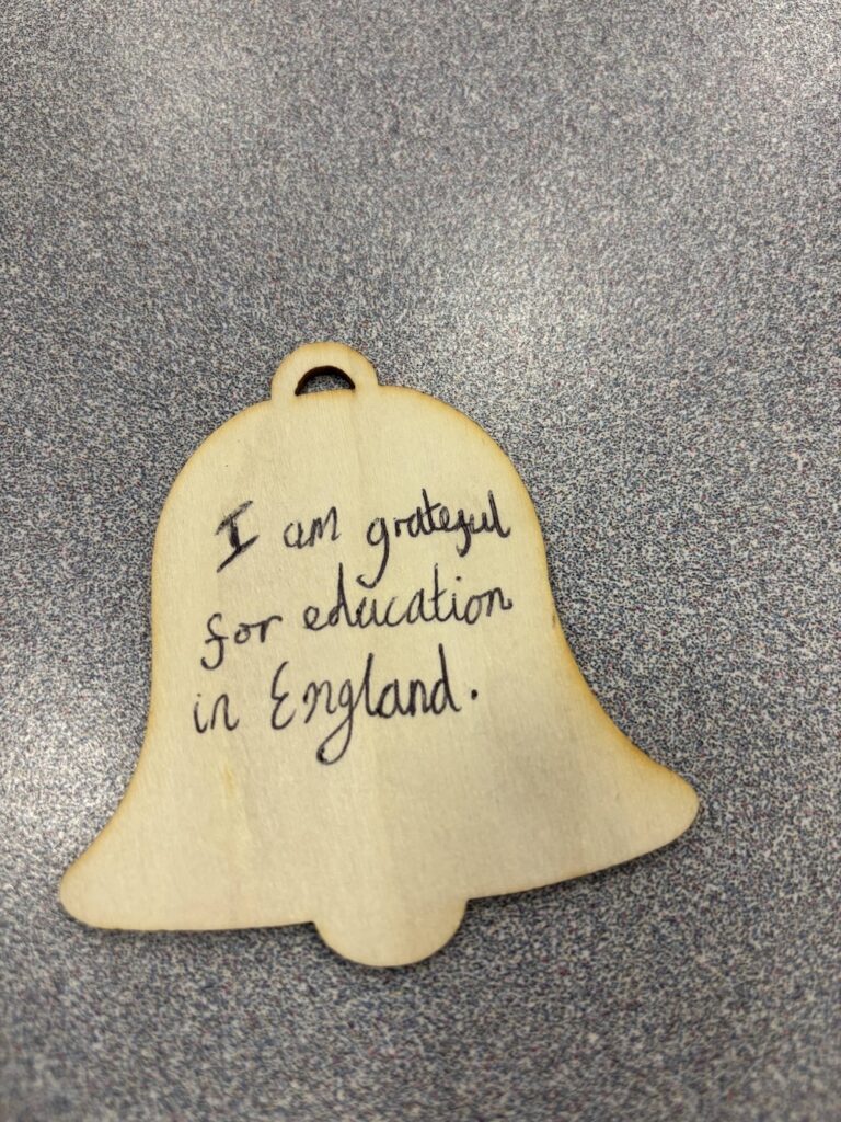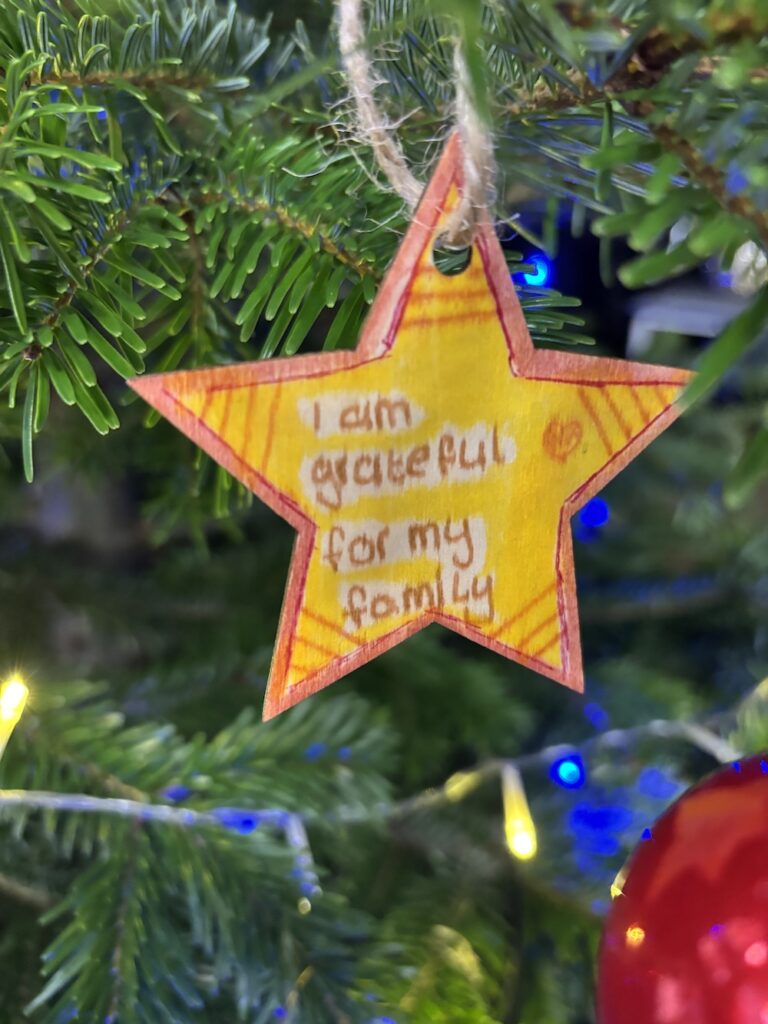 Pupils came together this week to reflect on what they are grateful for. Pupils made a donation towards our Trust Charity Papyrus to make Christmas decorations for our school Christmas Tree. Over 200 pupils from across the school participated to raise £206.00 in just one hour towards our school total. Here are some photos of the designs and the final display.